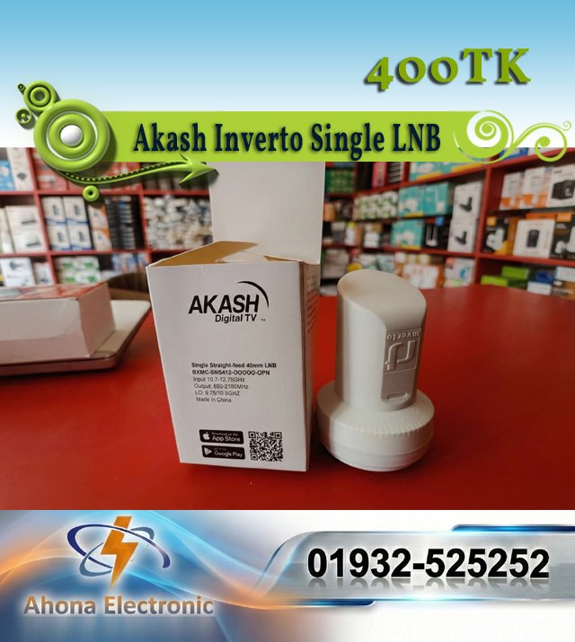 আপনি কি আকাশ ডিটিএইচ-এর সিগন্যাল কোয়ালিটি নিয়ে আপোষ করতে চান না? তাহলে আপনার জন্য সেরা পছন্দ হলো এই Inverto Single LNB। এটি আকাশ ডিজিটাল টিভির অফিশিয়াল প্যাকেজিংয়ে আসে, কিন্তু এর হার্ডওয়্যার তৈরি করেছে বিশ্বখ্যাত স্যাটেলাইট ব্র্যান্ড Inverto।
