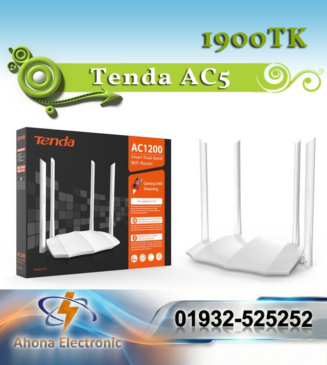 আপনি কি গেমিং বা হাই-ডেফিনিশন (HD) ভিডিও স্ট্রিমিংয়ের জন্য একটি শক্তিশালী রাউটার খুঁজছেন? Ahona Electronic আপনার জন্য নিয়ে এলো Tenda AC5, যা একটি স্মার্ট ডুয়াল-ব্যান্ড ওয়াইফাই রাউটার। এটি বিশেষভাবে ডিজাইন করা হয়েছে বড় বাসা এবং হাই-স্পিড ইন্টারনেট ব্যবহারকারীদের জন্য।