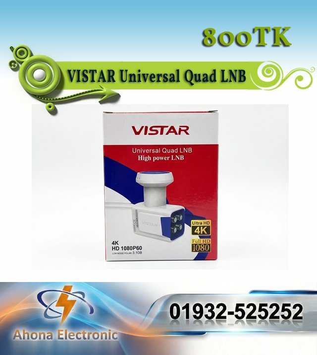 আপনার বাসায় কি ৪টি টিভি আছে? অথবা আপনি কি প্রতিবেশী বা ভাড়াটিয়াদের সাথে একটি ডিশ লাইন শেয়ার করতে চান? VISTAR Universal Quad LNB ব্যবহার করে আপনি একটি ডিশ এন্টেনা থেকেই ৪টি ভিন্ন রুমে সম্পূর্ণ স্বাধীনভাবে টিভি দেখার সুবিধা পাবেন।